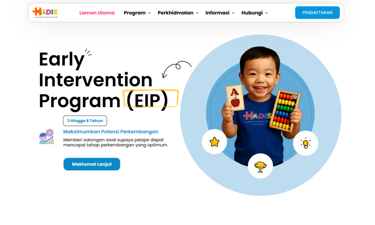 The HADIS Children Therapy website is thoughtfully designed to reflect the center’s mission of care, support, and professionalism. Its clean layout, child-friendly visuals, and easy navigation make it approachable for parents while maintaining a trustworthy and informative presence. Overall, the design successfully creates a welcoming digital space that mirrors the warmth and expertise of the therapy services offered.